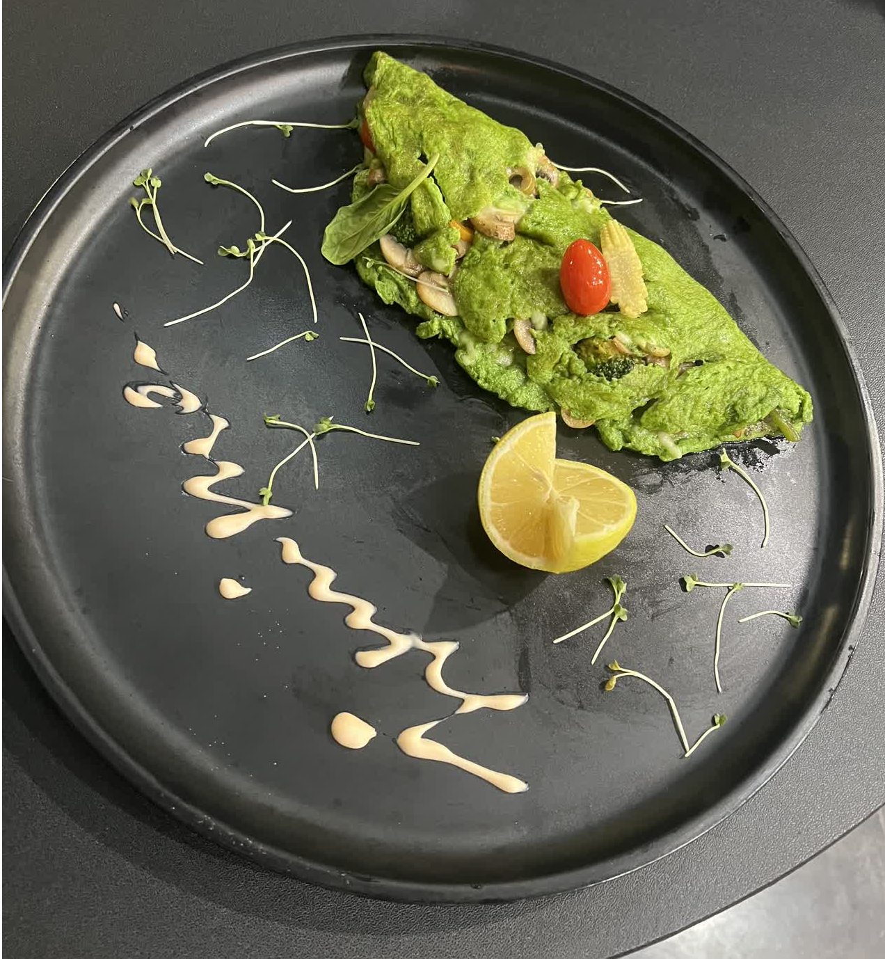 مرغ گرين شده،سس پستو،گوجه...